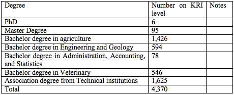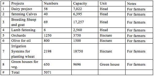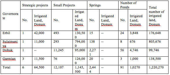 • In accordance to the law on investment, law no. 4 of 2006, the Investment in agriculture shall reach 3% on the KRI level.