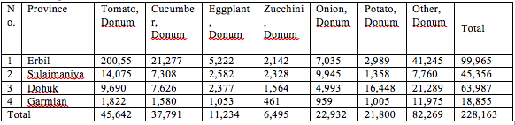Other vegetables can cover 62% of local demand. The basic requirements for self-sufficiency from vegetables do exist in the KRI, provided that each strategic product (e.g. tomato, onion, and cucumber) is raised under a separate project and a special committee and department is established for each of these products.
