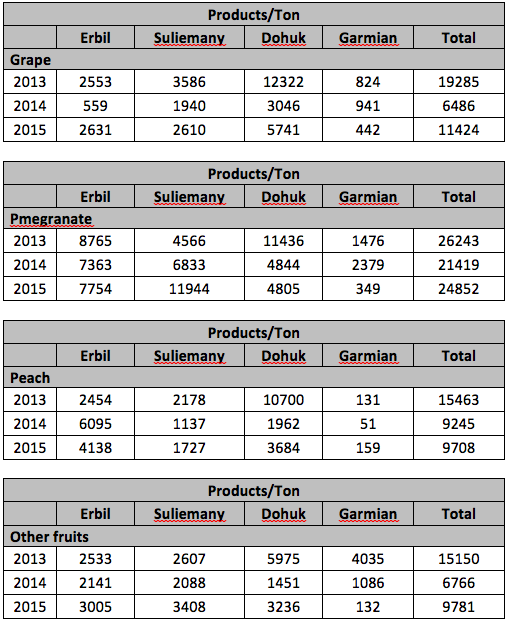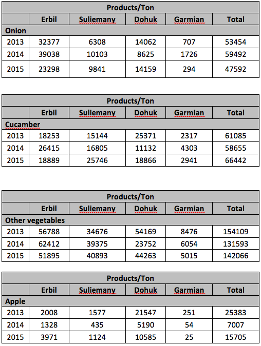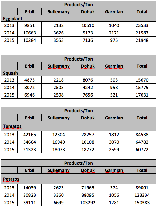 Potato production has achieved self-sufficiency, similar to wheat, due to the right amount of support from the MoAWR. Providing the best true potato seeds accompanied by providing ongoing instructions to the farmers and protecting the product during the marketing phase are considered to be the other main factors that have helped in achieving self-sufficiency. Production is 123,334 tons in 2014 and 150,383 in 2015 while the KRI’s demand for this product is 77,000 tons.