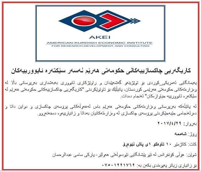 Published Article About AKEI’s Panel Organized to Discuss the Effect of KRG Reform Program on Different Economic Sectors