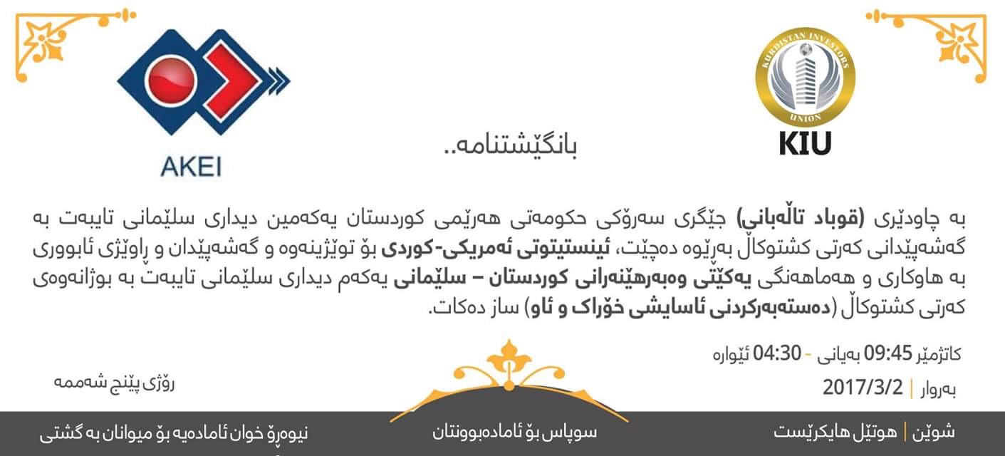 AKEI is an economic institute that established and registered in U.S. The opening ceremony was held in Erbil December 19, at Saad Abdulla hall and was attended by several KRG officials, and U.S. Consul General which announced their support for the work of the institute in Kurdistan.